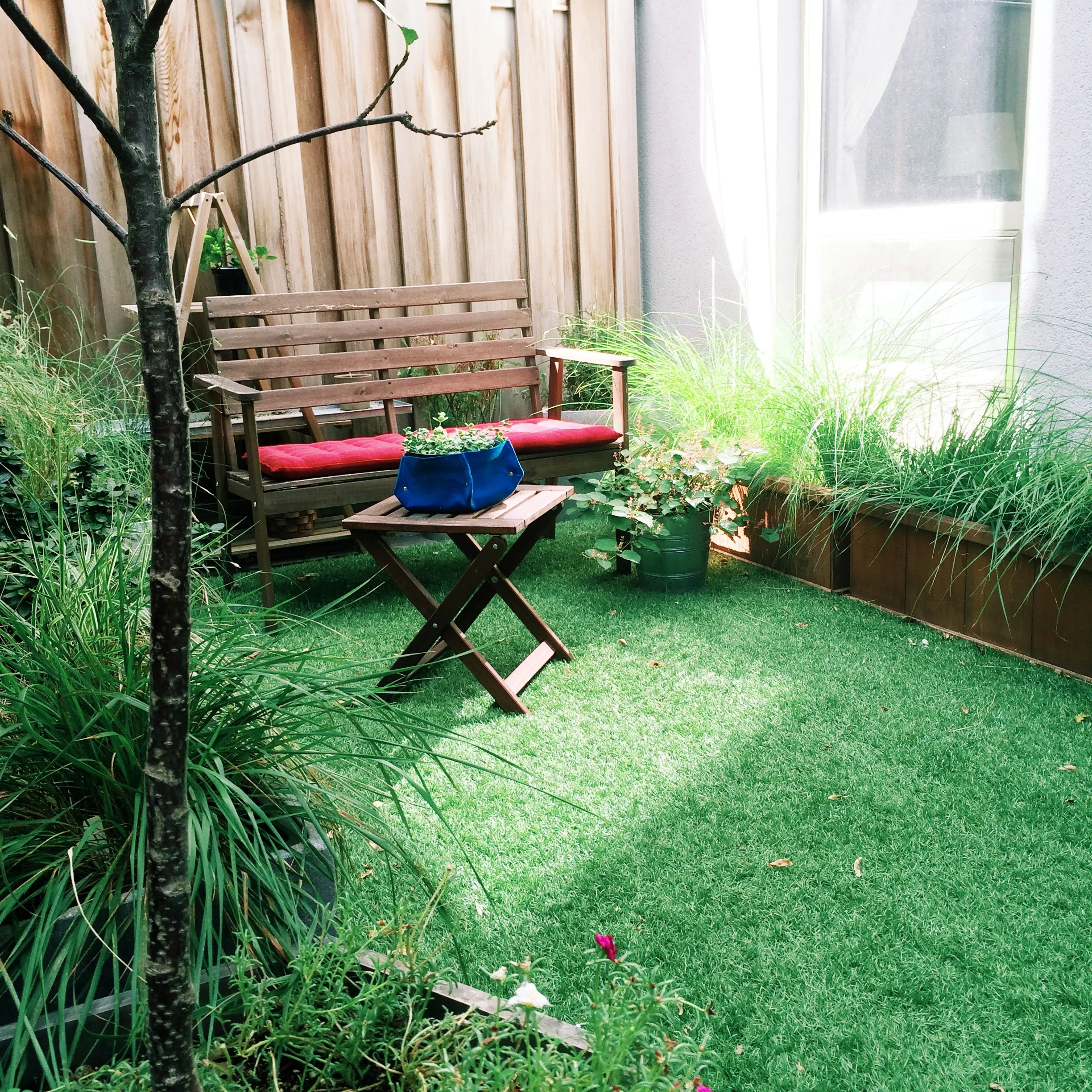 It's a bit of a secret garden, and I like it best when the eastern redbud blooms magenta. It'll look like this for another week or two, and then turn completely green. That's nice too, but not nearly as thrilling as a wholly pink tree.