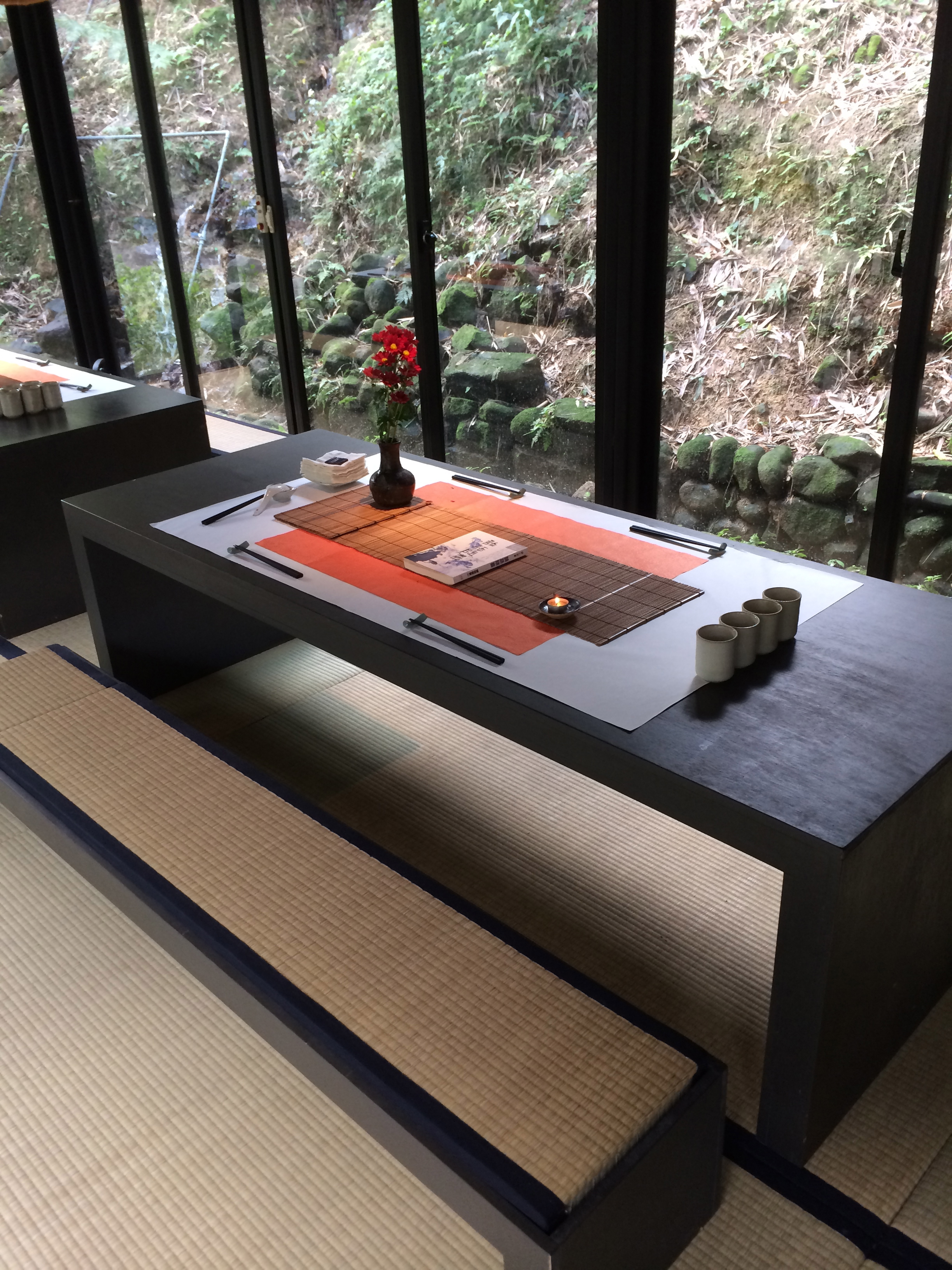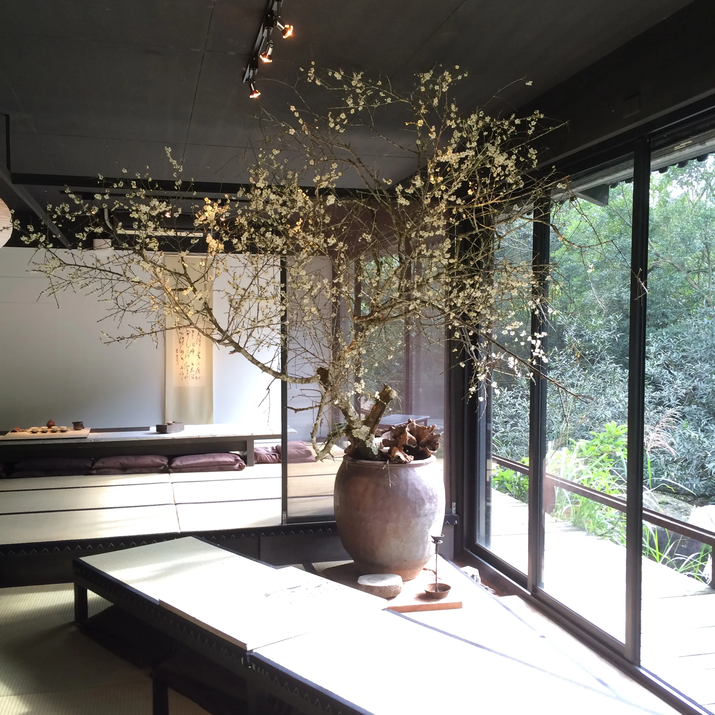 the food was delicious and creative, and the space was gorgeously simple. it made me think that maybe mountain life wouldn't be so bad. there are several wooden structures on both sides of a bubbling mountain brook (so idyllic!), and a bridge that spanned the water. all the rooms are lined with tatami mats and set with low tables. there is one large building that looked as if it could host parties, which also housed a plum blossom arrangement that i desperately wished was in my apartment.