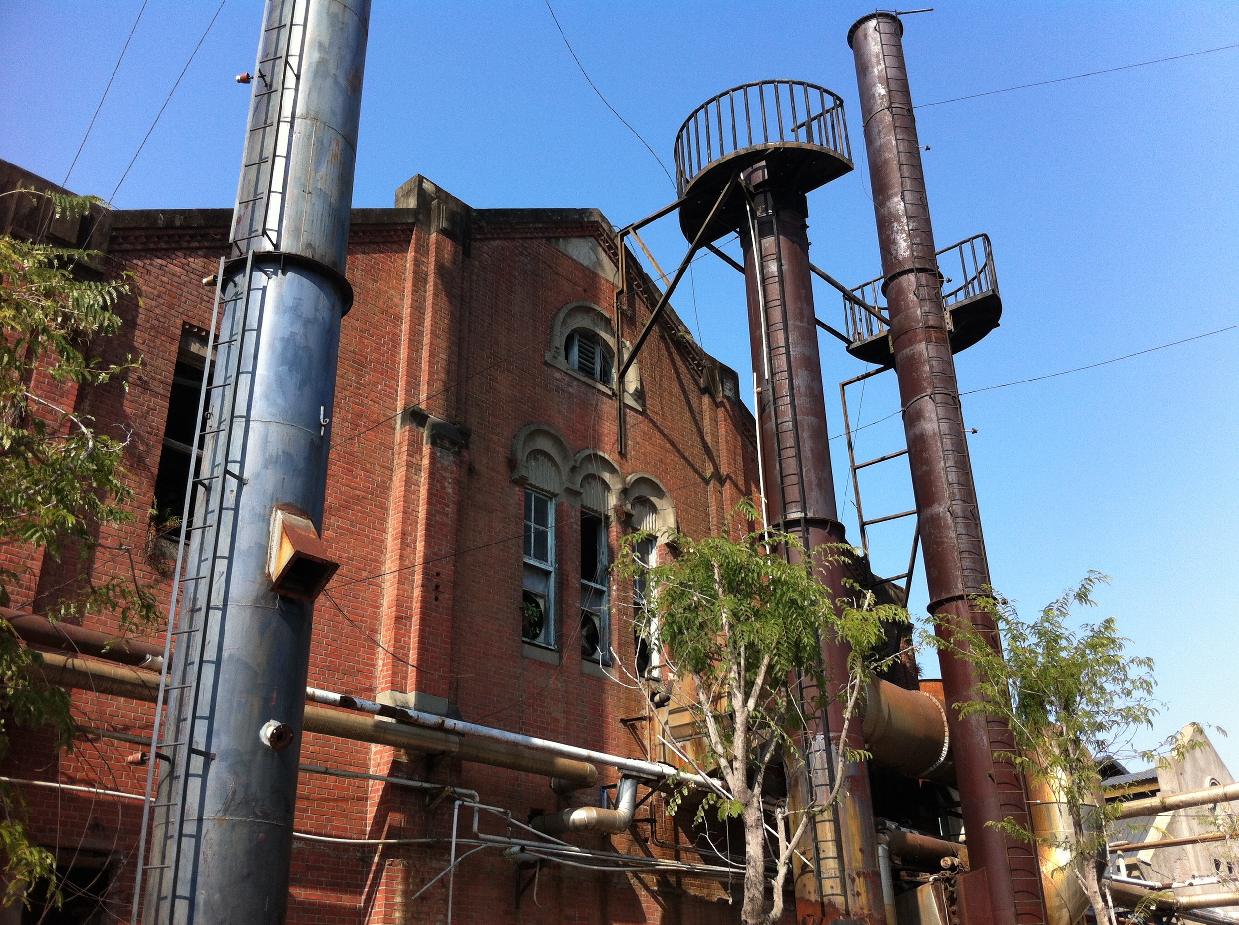 for the longest time, there was a derelict liquor factory across the street from my friend aileen's house in taichung. the facility was a ghost town all through my childhood, but was reanimated as a cultural event space and park a few years back. now they host concerts, exhibits, and other arty happenings there. it's a similar initiative to huashan 1914 in taipei, where long-abandoned spaces like tobacco and liquor factories are being converted into new creative venues. taichung cultural and creative industries park 「台中文化創意產業園區」is much quieter than huashan 1914, it seems, but it makes sense given that taichung is generally a much sleepier place than taipei. (but the weather is waaay better here.)